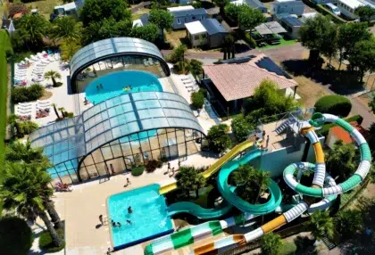 Plongez dans un univers de plaisir au cœur du Camping 5 étoiles La Boulinière à Oléron ! Notre espace aquatique ravira toute la famille avec ses bassins chauffés, sa pataugeoire couverte, et ses toboggans sensationnels.